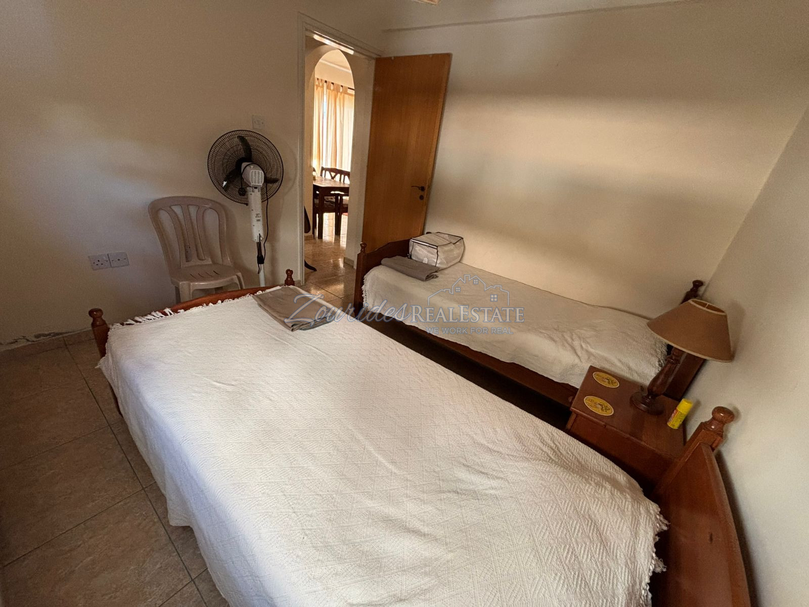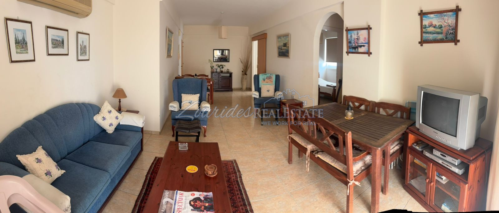 It is a property of two bedrooms, one bathroom, suitable for a single person who would like to work in Cyprus for a small period of time or a small family who would like to stay in the beautiful islanjd and enjoy the sunshine for a period of time.